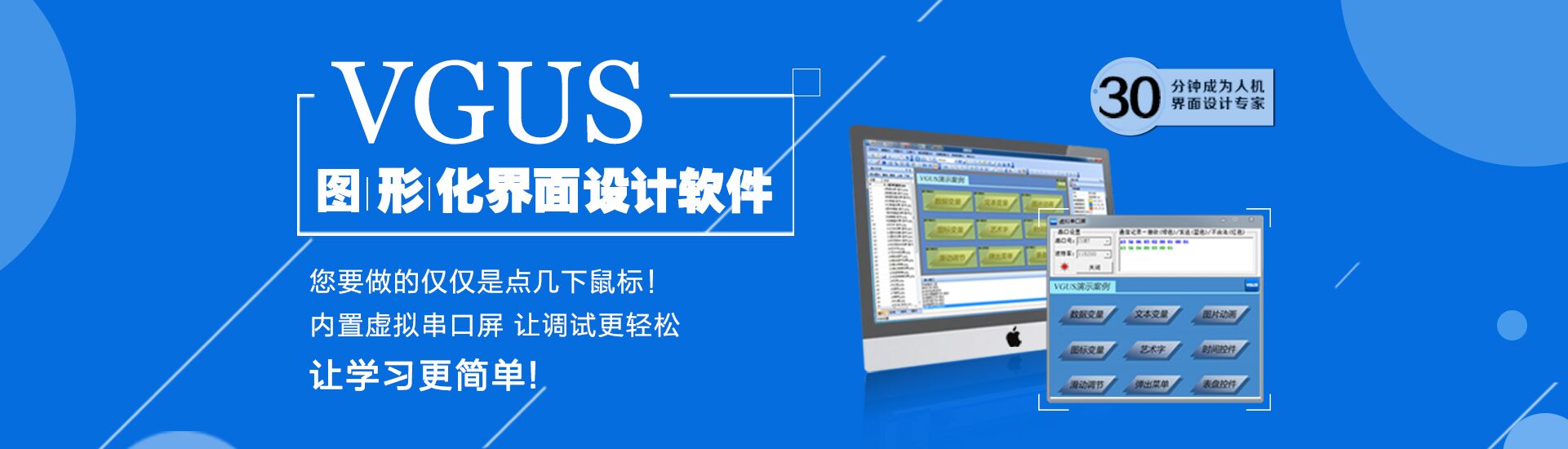 秉持讓人機(jī)交互設(shè)計(jì)更簡(jiǎn)單的理念,成功研發(fā)了工業(yè)組態(tài)軟件VGUS(Viewtech Graphical User Software)。該軟件提供了一種圖形化的人機(jī)交互功能設(shè)計(jì)方法,打破了傳統(tǒng)的描點(diǎn)、畫(huà)線(xiàn)的界面設(shè)計(jì)模式,降低了儀器設(shè)備的人機(jī)交互系統(tǒng)設(shè)計(jì)難度,解決了人機(jī)交互相關(guān)工作的重復(fù)性設(shè)計(jì)問(wèn)題,能夠讓設(shè)計(jì)人員把更多的精力集中于產(chǎn)品關(guān)鍵技術(shù)研發(fā)上,專(zhuān)心于專(zhuān)業(yè)產(chǎn)品的開(kāi)發(fā),提高了儀器設(shè)備的開(kāi)發(fā)效率。