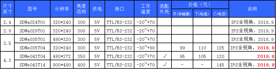 多款小尺寸IPS屏(2.4寸-4.3寸)將陸續(xù)量產(chǎn)