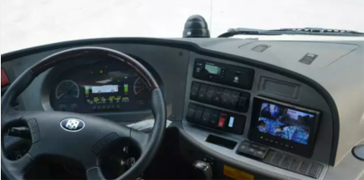 公交車(chē)輛由于其特殊的使用用途,需要頻繁開(kāi)關(guān)車(chē)門(mén)、上下乘客,而且通常是存在前后兩個(gè)車(chē)門(mén)。為了防止發(fā)生安全事故,一般會(huì)在前后車(chē)門(mén)位置各安裝一只攝像頭。儀表盤(pán)上的顯示屏可以顯示攝像頭傳送過(guò)來(lái)的下車(chē)門(mén)位置的乘客信息,方便司機(jī)開(kāi)關(guān)門(mén)。下圖為一款公交車(chē)儀表盤(pán)照片,司機(jī)正視方向顯示屏顯示車(chē)輛電池電量等內(nèi)部參數(shù),右側(cè)顯示屏顯示下車(chē)門(mén)位置的攝像頭監(jiān)控畫(huà)面。