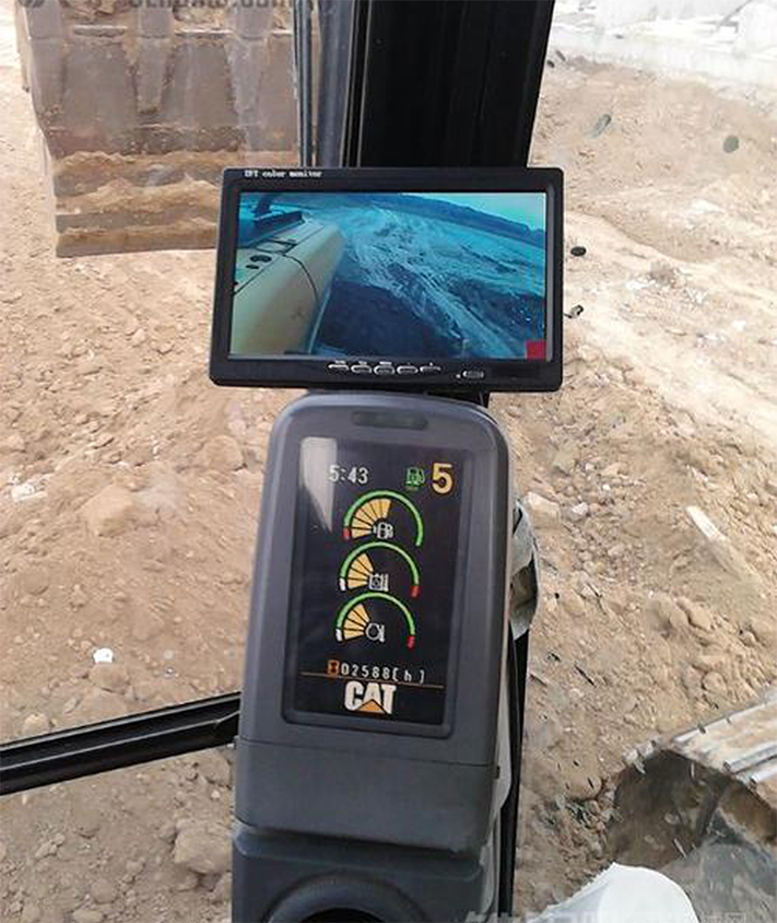 挖掘機(jī)、吊車(chē)等工程機(jī)械存在原地旋轉(zhuǎn)工況,而駕駛操作人員視線有限,出于安全考慮,必須借助攝像頭監(jiān)控視線盲區(qū)。下圖為卡特一款挖機(jī)駕駛室照片,下方為挖機(jī)監(jiān)控器,用于顯示挖掘機(jī)燃油油量、冷卻水溫、機(jī)油壓力等設(shè)備狀態(tài)參數(shù),上方加裝的顯示屏用于連接攝像頭用于顯示駕駛員視線盲區(qū)場(chǎng)景。