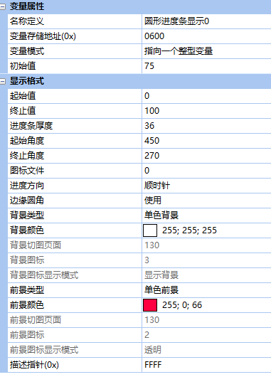 圖1 圓形進度條顯示控件屬性設(shè)置